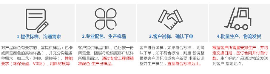 主營產品有:色母粒、功能母粒、抗老化抗紫外線、抗靜電母粒、阻燃母粒公司以磷系阻燃母粒、氮系阻燃母粒、溴系阻燃母粒、阻燃改性塑料為主,PP環保阻燃母粒、PE阻燃母粒、PC透明無鹵阻燃母粒、PET透明無鹵阻燃母粒、PA無鹵阻燃母粒、廣泛應用于:......
